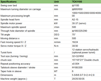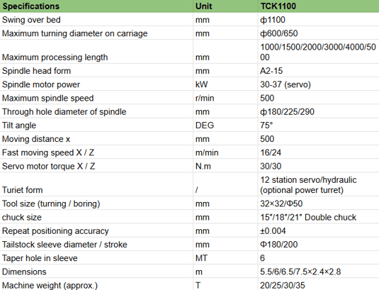 Large Swing Over Bed: The TCK1100 is designed for larger diameter workpieces, as indicated by its model number. This "swing" refers to the largest diameter that can be turned.