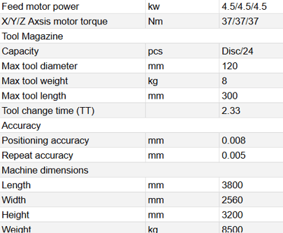 Powerful Spindle: An 11kW spindle provides ample power for machining a wide range of materials, enabling higher material removal rates and faster cycle times.