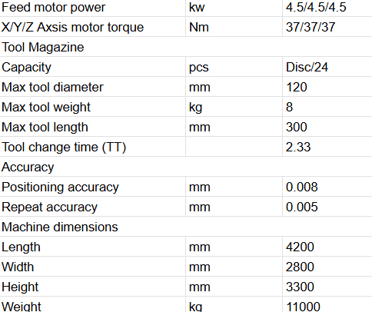 Powerful Spindle: An 11kW spindle delivers the necessary power to machine a wide range of materials, enabling high material removal rates and faster cycle times on large workpieces.