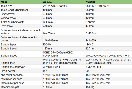 VEDON X6325C and X6325D are turret milling machines designed for a variety of milling operations.