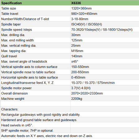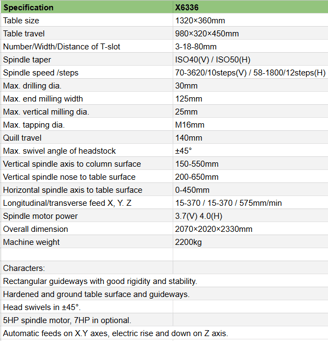 VEDON X6336 is a universal radial milling machine that offers a combination of vertical and horizontal milling capabilities.