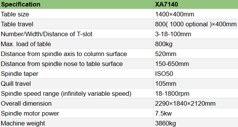 XA7140 Bed-Type Milling Machine