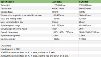 XQ6226A/B Universal Swivel Head Milling Machine