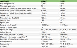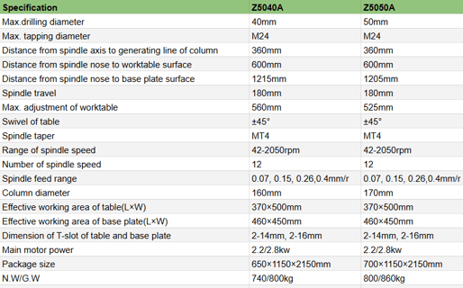 Z5040A/Z5050A Vertical Drilling Machine Max. Drilling Diameter 50mm