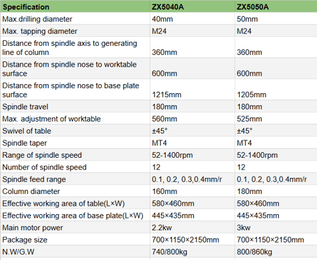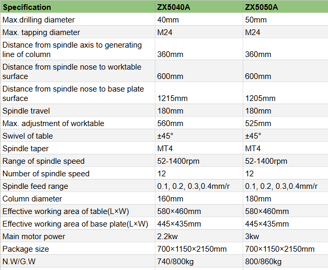 ZX5040A/ZX5050A Vertical Drilling Milling Machine Max.Drilling Diameter 50mm