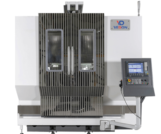 The VEDON DMC800U is a 5-axis vertical machining center (VMC). The "U" in the model name often signifies a universal or highly versatile machine. 5-axis machining centers are known for their ability to machine complex parts in a single setup.